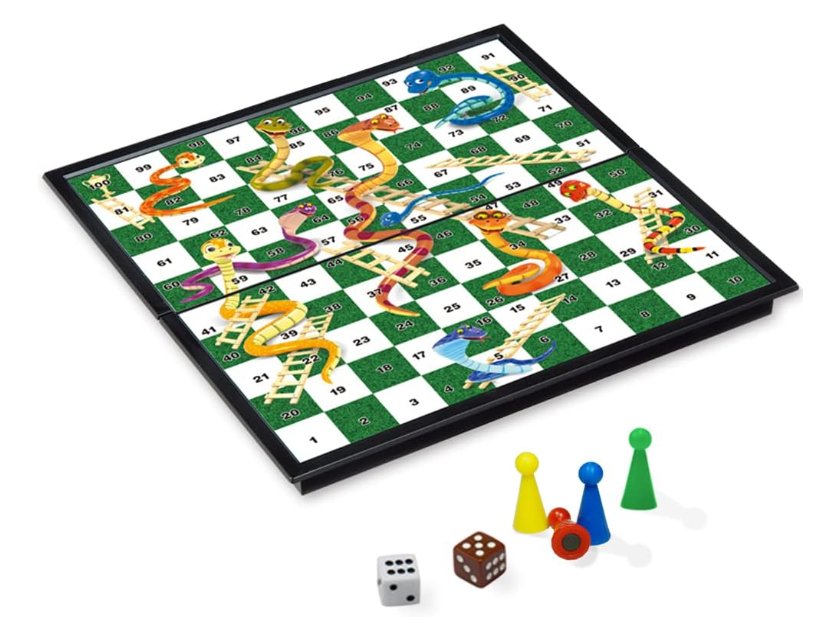 Includes four colorful player figures (red, green, yellow, and blue) and a pair of dice for a complete gaming experience.